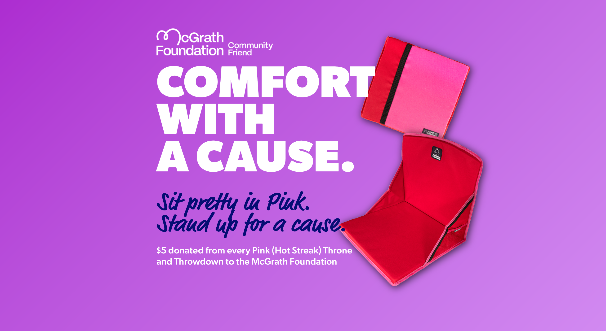 From the start, we wanted to give back. That’s why we’re proud supporters of the McGrath Foundation and the Black Dog Institute. A portion of sales from selected products goes directly to these organisations, ensuring comfort and wellbeing stretch beyond the stands and into the communities that need it most.